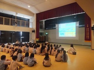 近くで消防車を見せてもらい、ホースなど消防車の道具の説明や火の取り扱いについて1クラスずつ消防士さんが説明を下さり、子どもたちは興味を持って真剣に聞いていました。