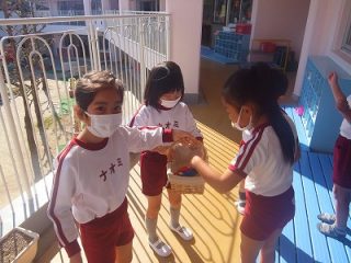 給食のカレーの日は、持ってきた野菜を調理して分かち合いたいと思います。