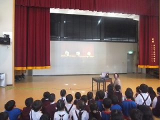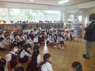 そして午後から、クリスマス祝会の取り組みに向けて、どのような劇をするのか年長組みんなで昨年の劇を見ました。