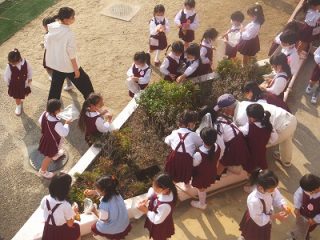 今年度、訓練を数回行っているため、少し驚きの表情はありましたが冷静に園庭まで避難することが出来ました。
