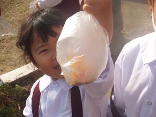 袋にマリーゴールドなどの花を入れて、お土産にするんだ~と嬉しそうな子どもたち。