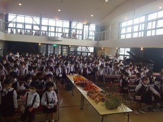 豊かな実りを喜び、収穫を与えて生命を保って下さる神さまの恵みに感謝の礼拝を捧げました。
