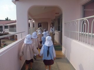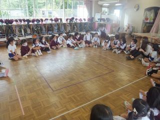 ナオミ幼稚園のお友だちは、みんな整列して園庭に真剣な表情で避難できる力はついてきているので、訓練後クラスの先生ともしもの場合について沢山話し合い、とっさの判断ができるようにシミュレーションをしました。