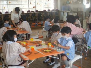 幼稚園では特にハロウィンの行事を行っていませんが、子どもたちが自主的に製作をして楽しむ姿がありました。