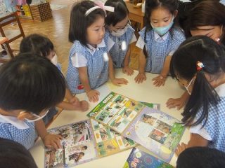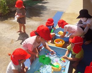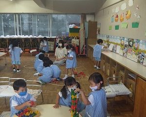 2学期が元気いっぱい始まりました。欠席の園児も少なく、みんな比較的落ち着いた表情で登園し、じっくり自由活動を楽しみました。
