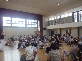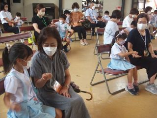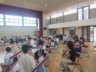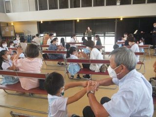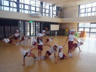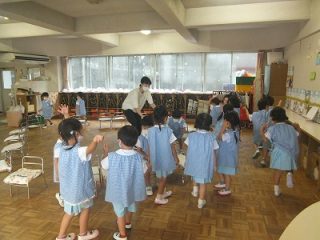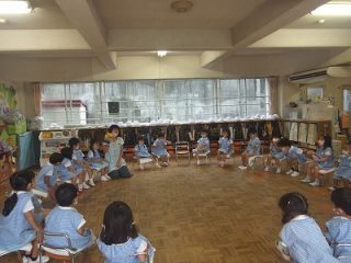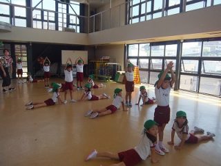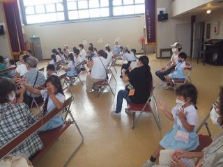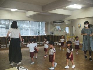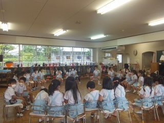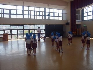 コロナで中止が続いていたもみじ参観。年長組さんのみですが、ホールで広々行うことが出来ました。