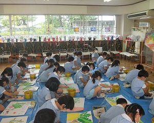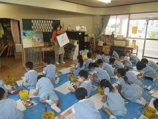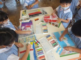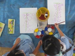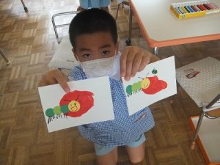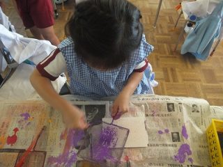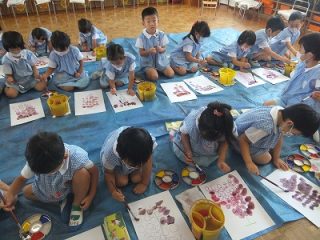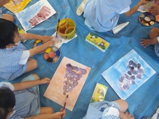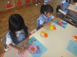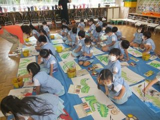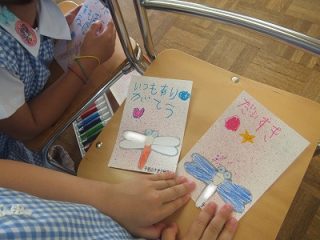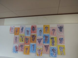 2学期に入り、おじいちゃんおばあちゃんへハガキを送るため、子どもたちは色々な技法を使って製作しました。