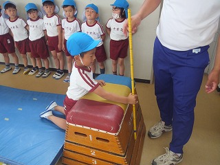 体操の時間に「コスモスポーツクラブ」による体力測定を行いました。