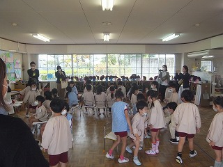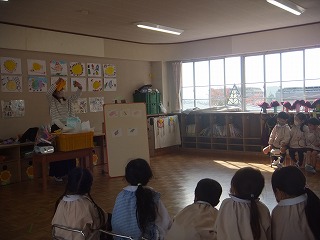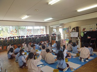 みんなでお誕生月のお友だちに歌のプレゼントを贈って、先生からはパネルシアターやマジックなどお楽しみをプレゼント!