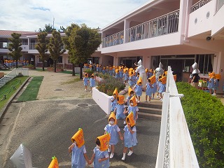 今日は全園児参加の避難訓練を行いました。