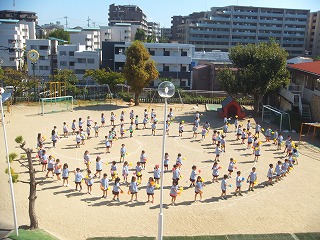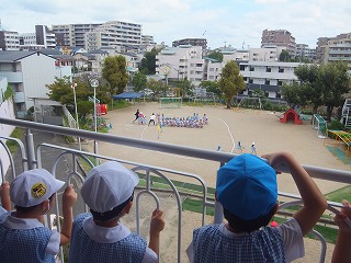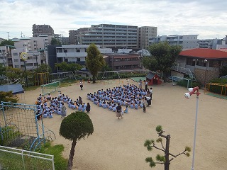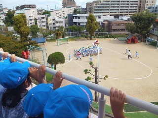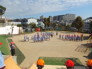 分散保育後から少しずつ練習を重ね、今日はどの学年も運動会の練習のために園庭へ出て元気に頑張りました。