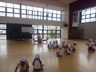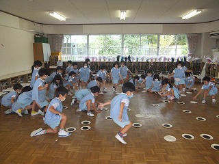 初めて参加の年少組さんは、かけっこやダンスなどやる気満々で練習を楽しんでいます。