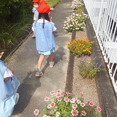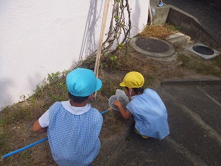 幼稚園の色々なところに「きくいも」が育っています。