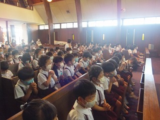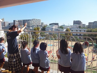 1学期に何度か訓練を予定していましたが、いつも雨模様でなかなか園庭まで避難することができませんでした。