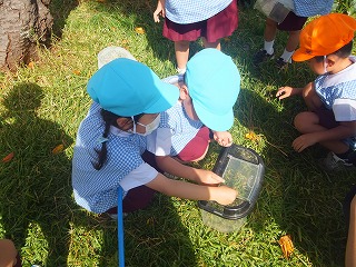 幼稚園に植えて今年で3年目のきくいも。昨年は年長組さんがサツマイモが不作だったため、きくいも堀りを体験しました。