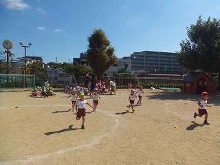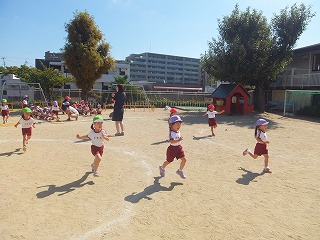10月からは学年で園庭に出て練習をし、みんなで徐々に運動会を楽しみに過ごせるようにプログラムを考えています。
