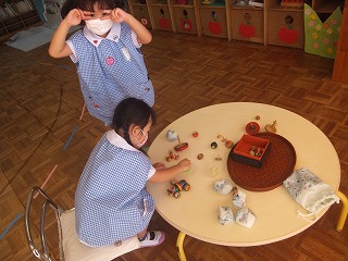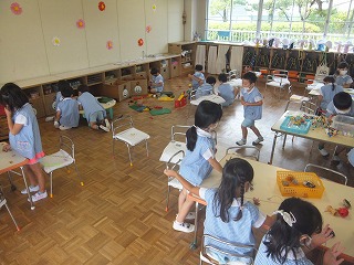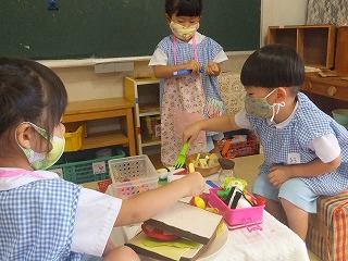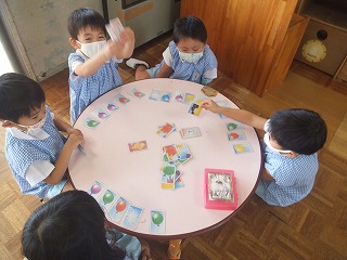 分散保育は、クラスのみんなに会えず寂しい思いをもって過ごしている子どもたちもおりますが、少人数ということでゆったり時間が流れ、今まで関わりが少なかった子と関係を深めたり、1人ひとりが自分を出しながら過ごせたり、色々な成長が見られます。この期間をマイナスに捉えず、プラスの面にも注目して、今週も充実した保育ができるよう努めていきたいと思います。
