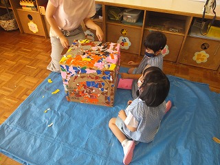分散保育中は、半数の子どもたちが登園していたので全体的に園内が静かでしたが、今日はいつもの子どもたちの楽しい声が溢れ、園内に元気が戻ってきました。