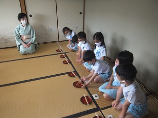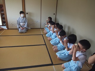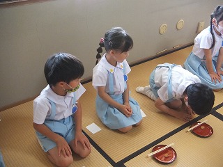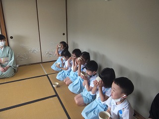 お箸の扱い方やお抹茶の苦さに苦戦していると、お友だちがこうだよ!と教えてくれたり、がんばれ!っと応援してくれたり、お作法の時間を積極的に参加しているのが伝わります。