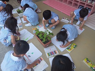 今日は自由画帳にその成長を描きました。