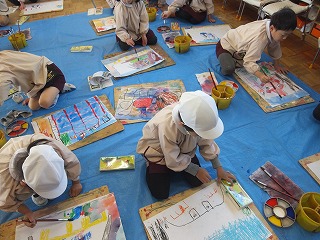 3年間で自由に思いきり描きたいものを表現できるようになり、成長を感じたお絵描きでした。