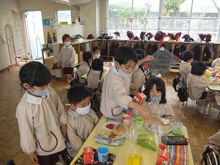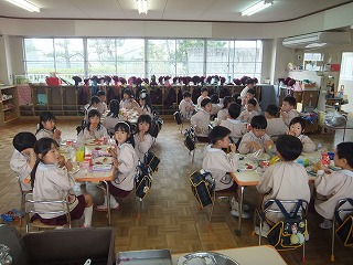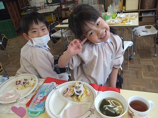 今日は最後の給食の日。おかわりしてモリモリ食べれるようになったね。