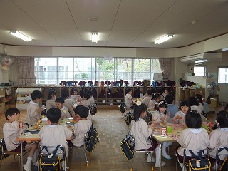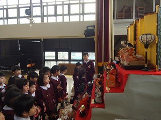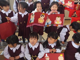 「♪あかりをつけましょぼんぼりに~」と大合唱のクラスもあり、楽しいひな祭りになりました。