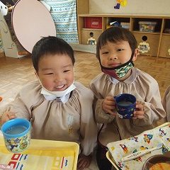 あまーいカルピスを美味しいね!とお友だちとお話しながらにっこり。