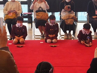 今年は子どもたちが普段お稽古している流れと同様のお点前を保護者の方に見て頂きます。