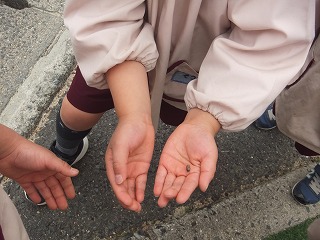 ぽかぽかお昼は温かいので、園庭の草花から春の気配を感じます。