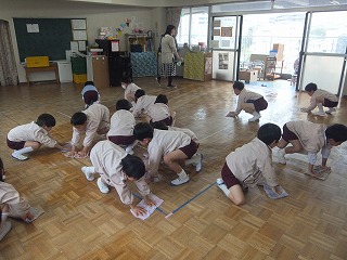 明日、卒園式を控えた年長組さん。今日が最後の午後保育でした。