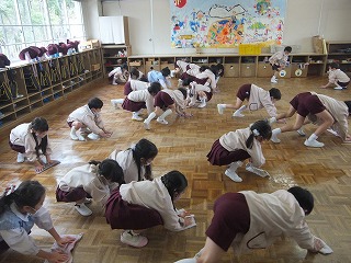 明日はピカピカになったクラスに集合して、チャペルで堂々と卒園証書を受け取り、クラスのお友だちと楽しい思い出をいっぱい作ってね。