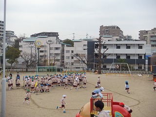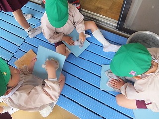 子どもたちも腕まくりをしながら、園庭で鬼ごっこや中あてを楽しみ暑いくらいです。