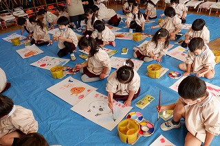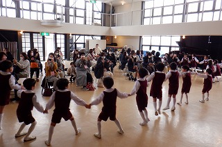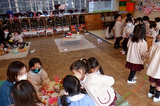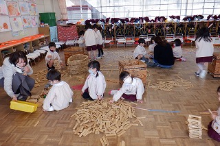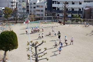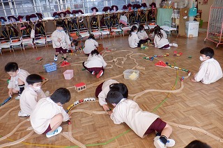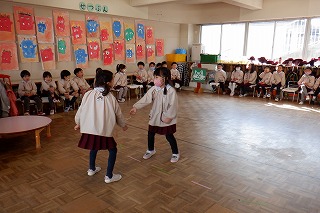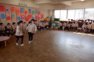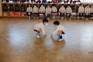 もうすぐ初めての進級とクラス替えがあります。自分のクラスのお友だちとはとっても仲良しになったけど、学年のお友だちとも交流できるよう合同遊びを設けました。