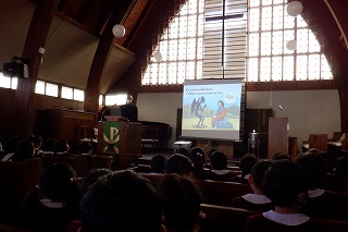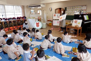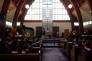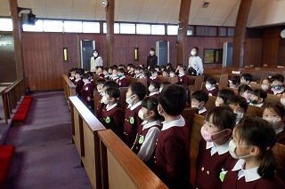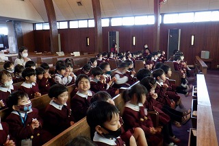 今までも、違うクラスのお友だちと礼拝をしたり楽しいゲームをしました。今回は自分で選んでお部屋に入り、自分でお友だちと交流できるように配慮しました。