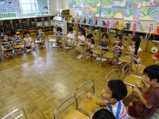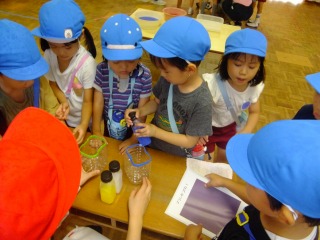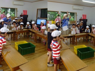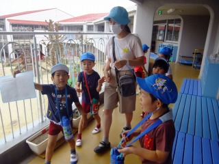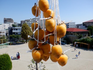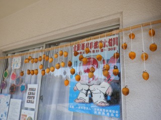 バスの運転手さんがきれいに干し柿になるように、準備してくれました。たくさんできたので、各クラスに2つずつ吊るすことにしました。毎日観察していると少しずつ変化があるよ!美味しくなぁれと柿を時々揉むといいんだって!楽しみだね!