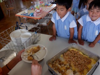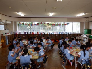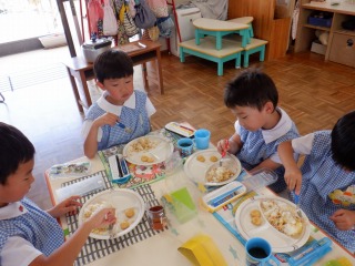 今日の給食で、お月見だんごがでました。