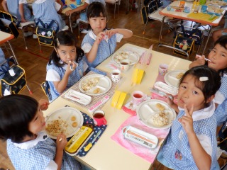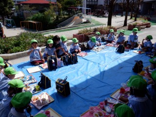 お弁当をお外で食べました!