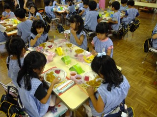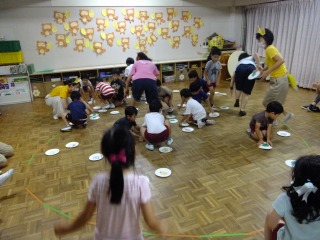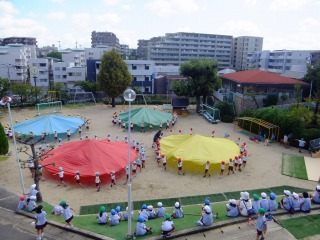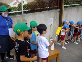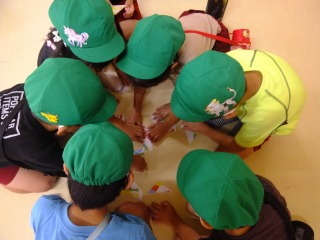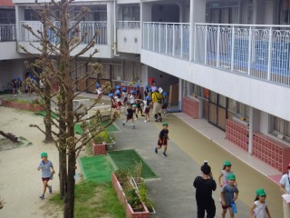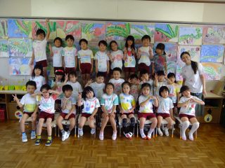 年長組さんは頑張る種目がたくさんありますが、1つ1つ真剣に張り切って練習し、充実した姿が見られます。組体操ではみんなで行う技がうまくきまった時は友だち同士で喜び合ったり、リレーでは作戦会議を開いたり、クラスの団結力がどんどん深まってきました。