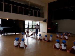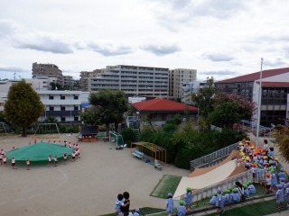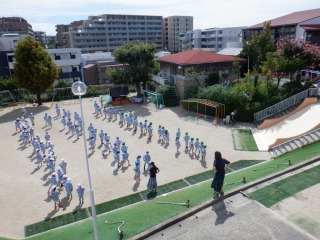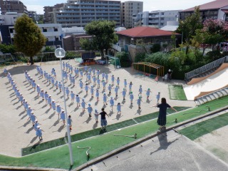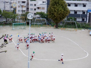 園庭で年長組さんが運動会のダンス