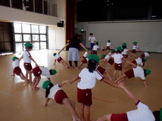 今日は組体操の3人組の種目を教えてもらいました。